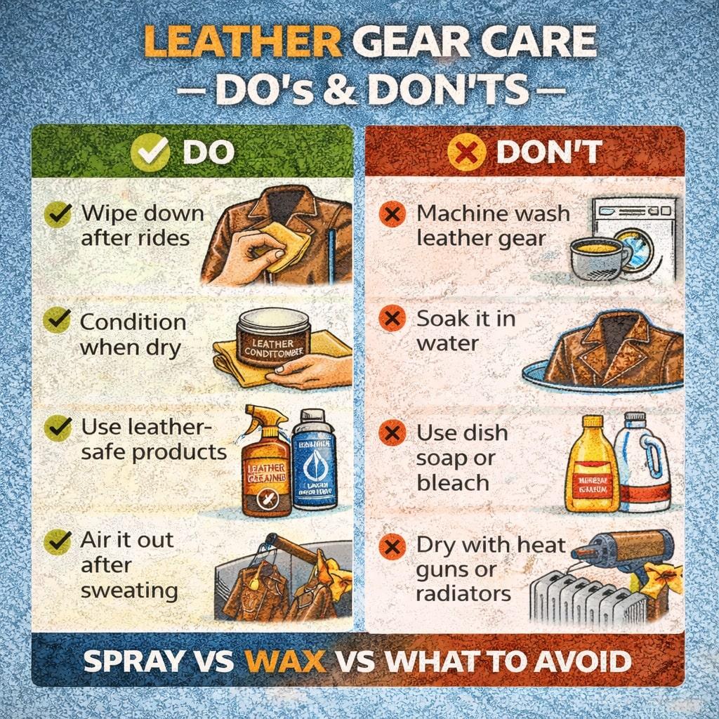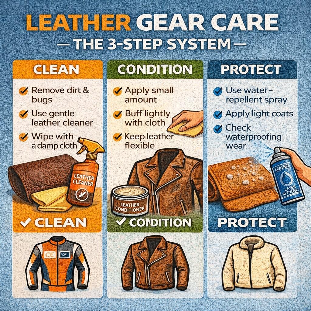 Leather is tough, but it still needs attention. Sweat, sun, rain, road grime, and heat all attack it slowly. If you clean and condition your gear the right way, it lasts longer and feels better every ride.